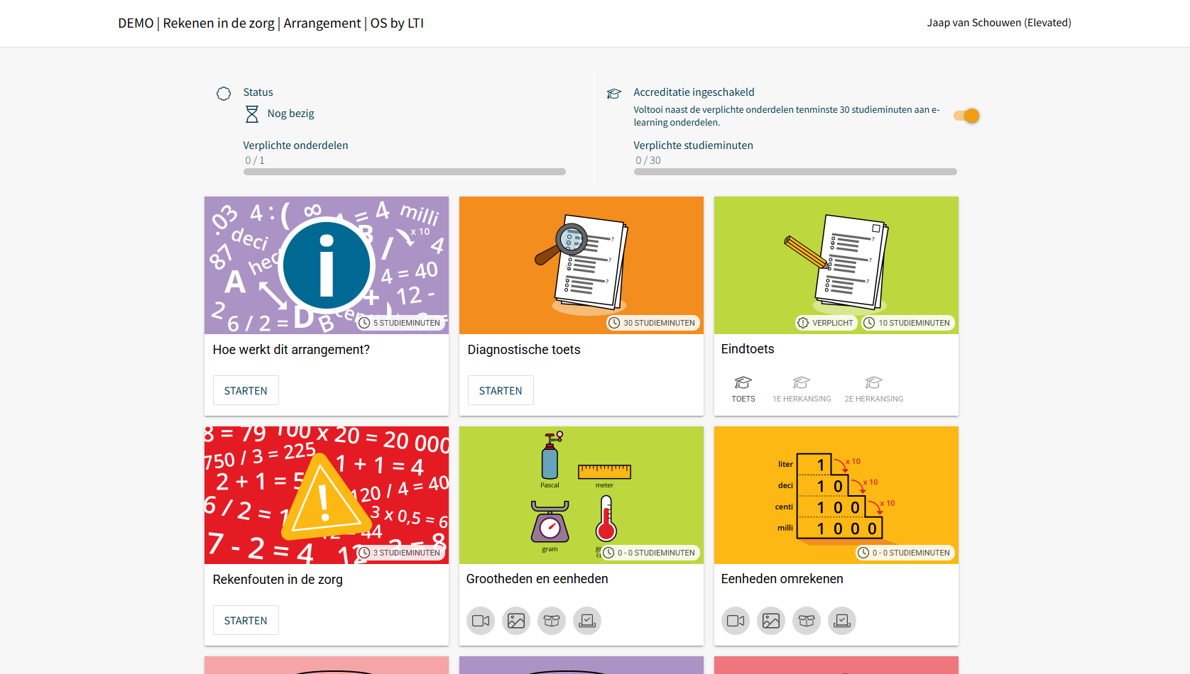 Bij arrangementen werkt dit iets anders. Een arrangement bestaat uit meerdere losse leeronderdelen die je in je eigen volgorde en tempo kunt doorlopen. Om accreditatiepunten te ontvangen binnen een arrangement, gelden daarom aanvullende voorwaarden.