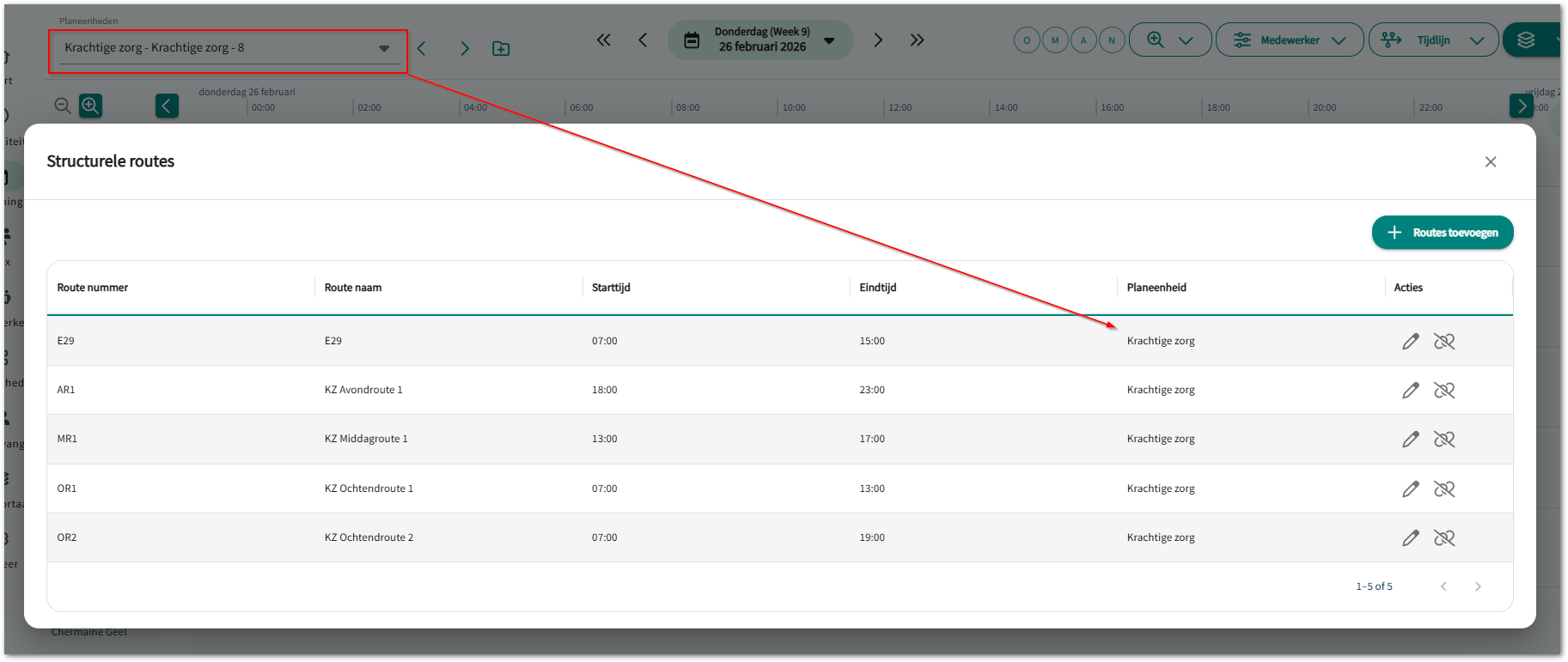 Wil je alle routes in één keer zien, inclusief alle ontkoppelde routes (zonder planeenheid)? Deselecteer alle planeenheden linksboven en open dit scherm vervolgens opnieuw.