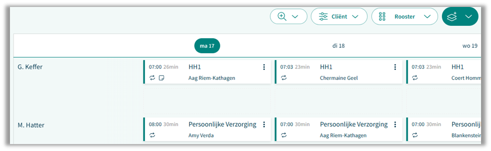- Toont alle afspraken per medewerker of cliënt in een rooster