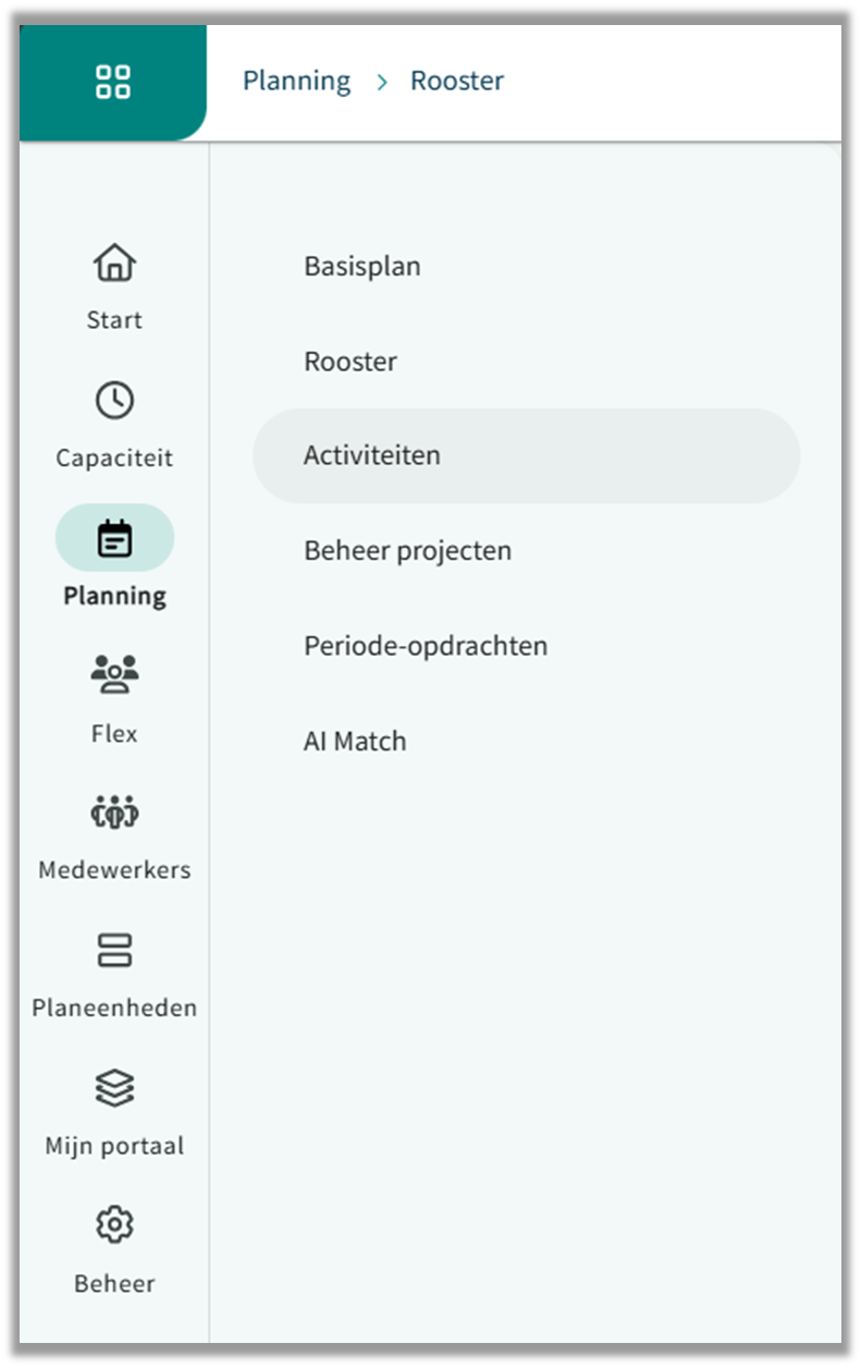 - Alleen zichtbaar indien gebruik wordt gemaakt van Plannen vanuit Rooster