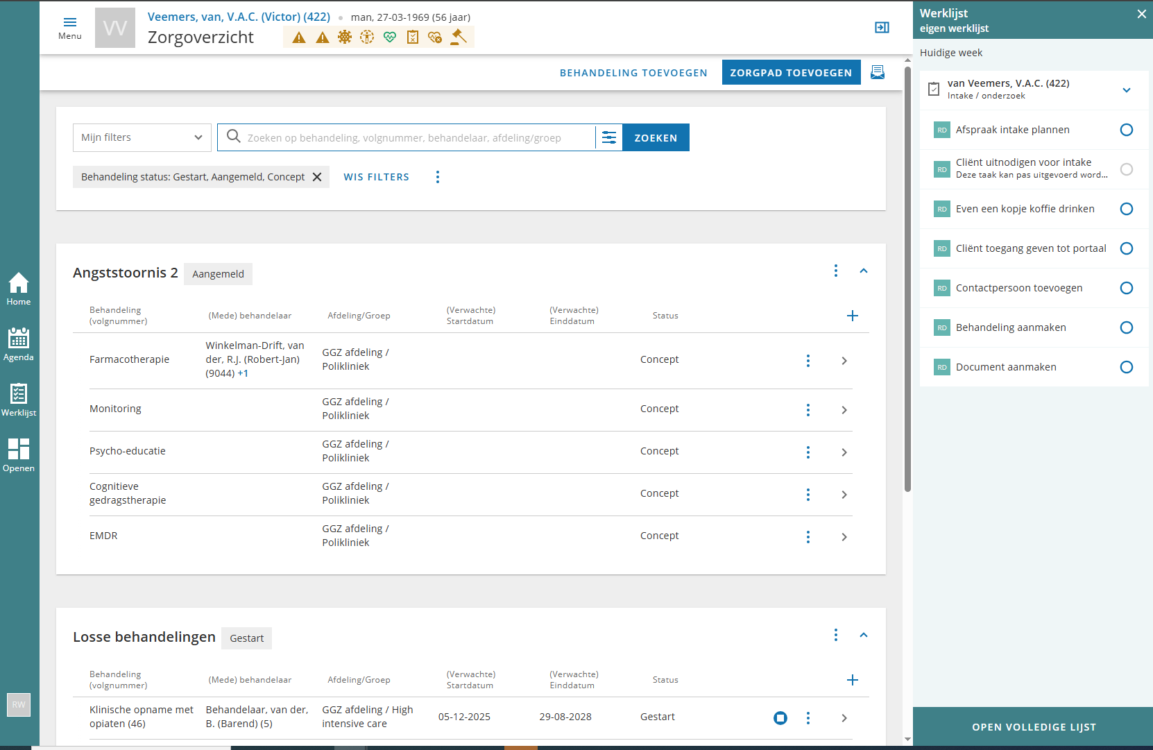 De cliënten die worden getoond, hebben een behandelrelatie met de ingelogde medewerker (naamgeving is afhankelijk van de klant):