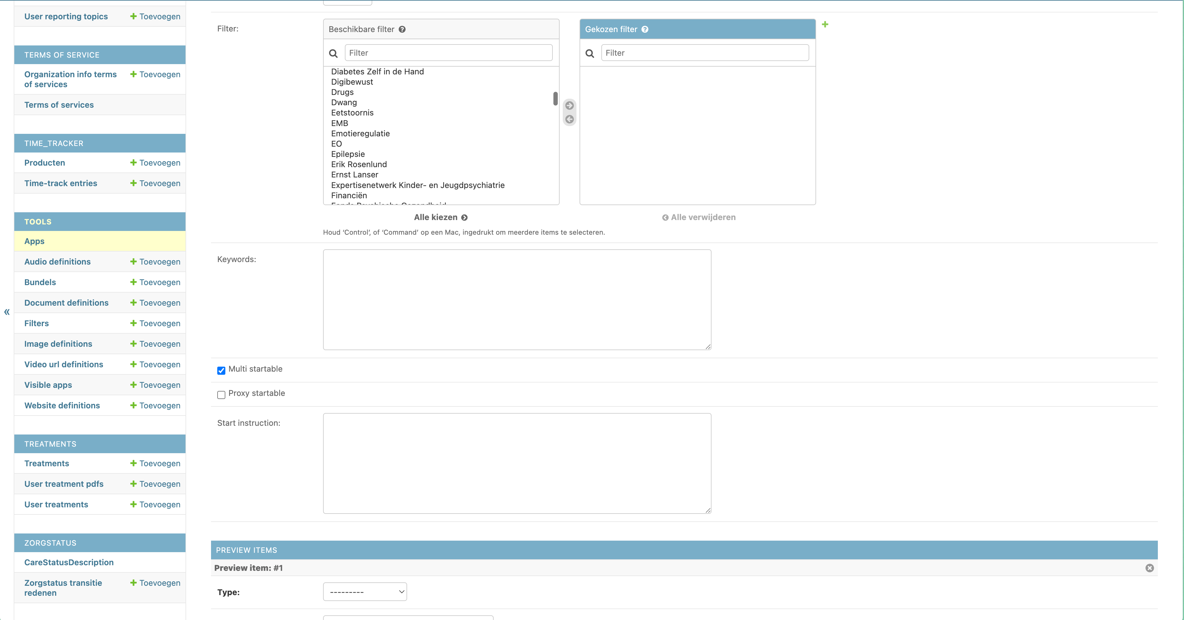 Als je vervolgens op een app klikt kom je op een pagina terecht waar je alles van het hulpmiddel kan aanpassen.