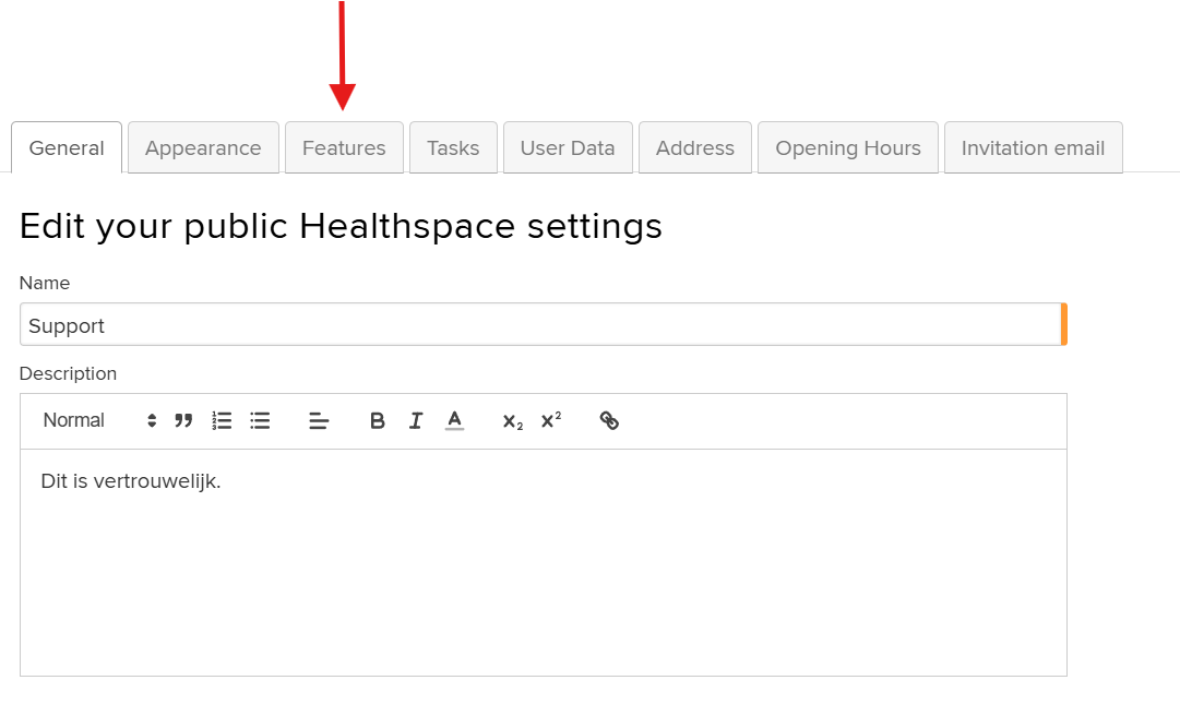You can do this through > Manage Healthspace > Settings > Features.
