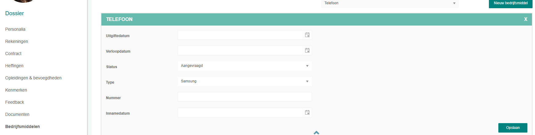 Bedrijfsmiddel toevoegen in het personeelsdossier