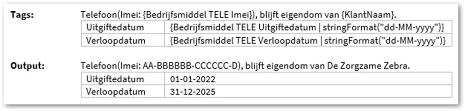 het bedrijfsmiddel. Standaard voegen wij de uitgiftedatum, verloopdatum en