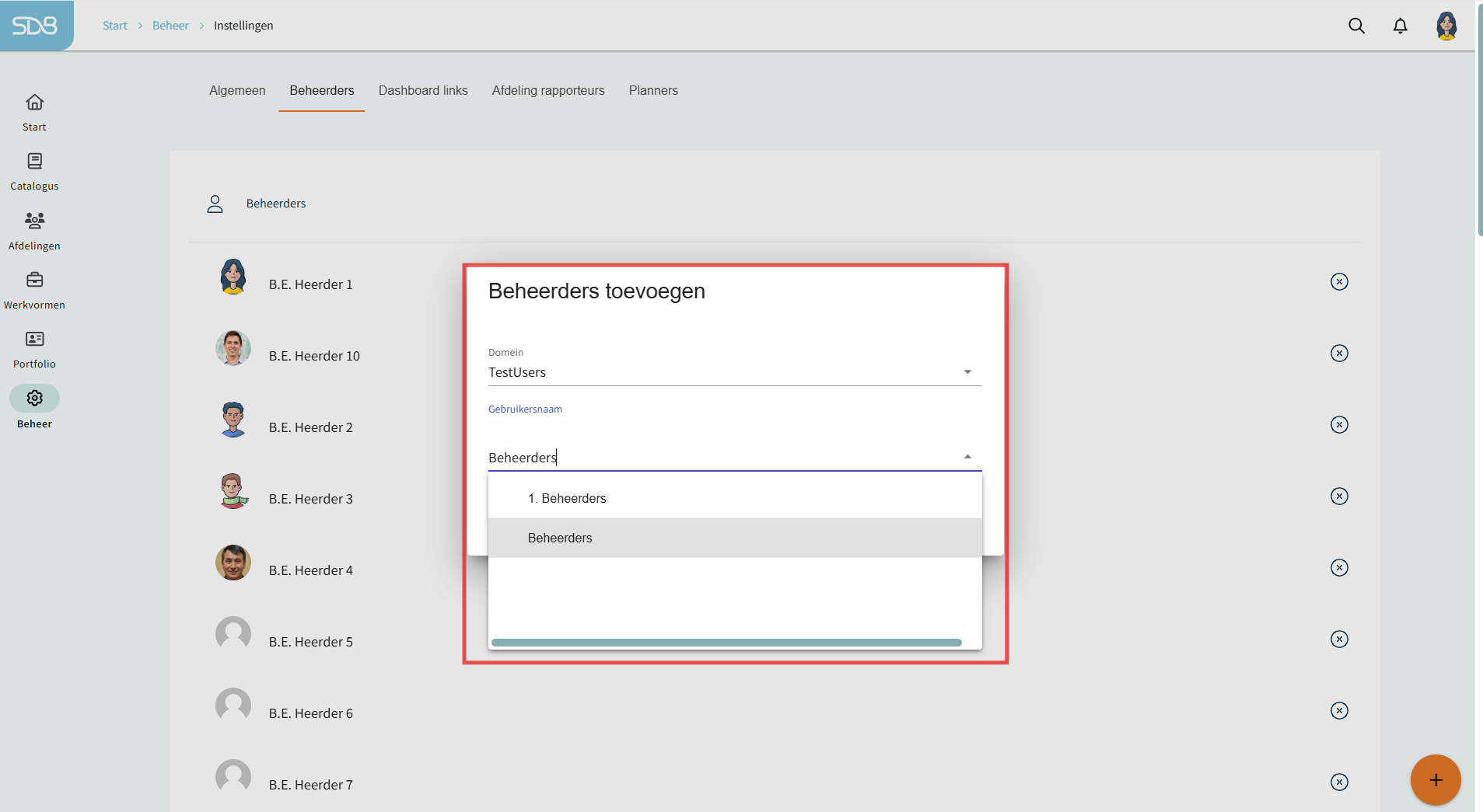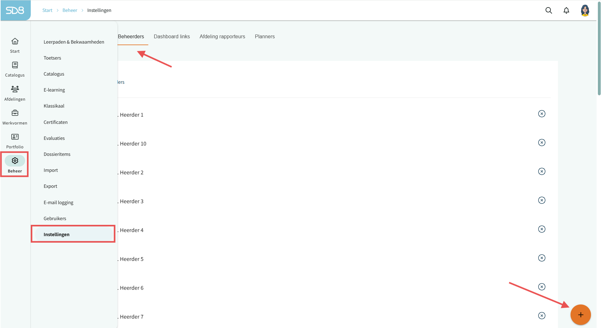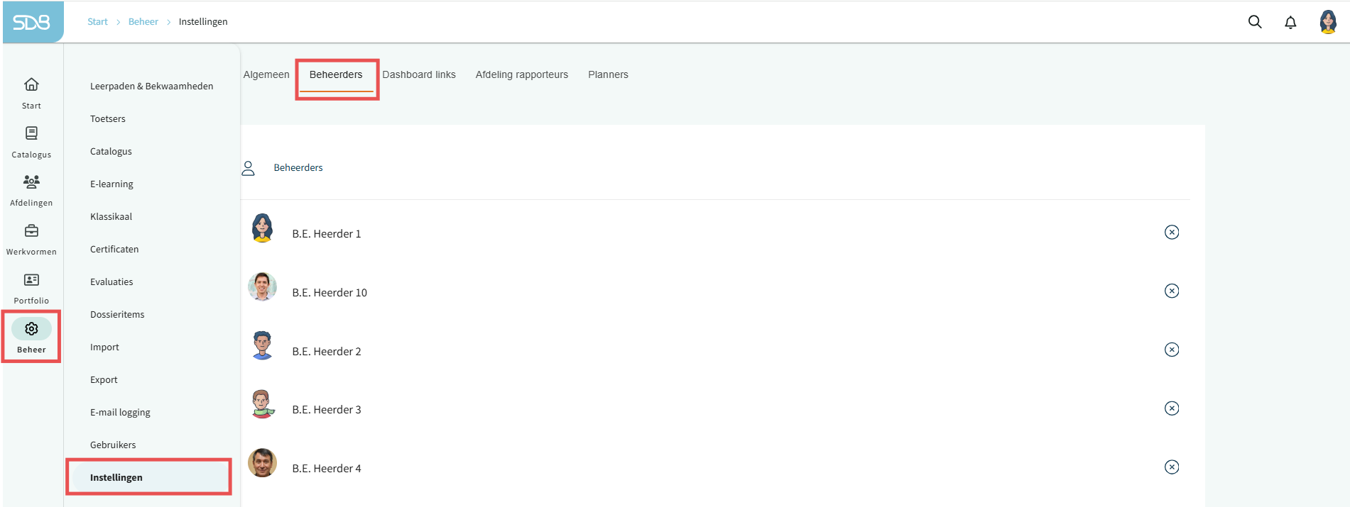 Om aan een individuele gebruiker de rol beheerder toe te kennen, ga je naar Beheer > Instellingen en kies je vervolgens de tab beheerders.