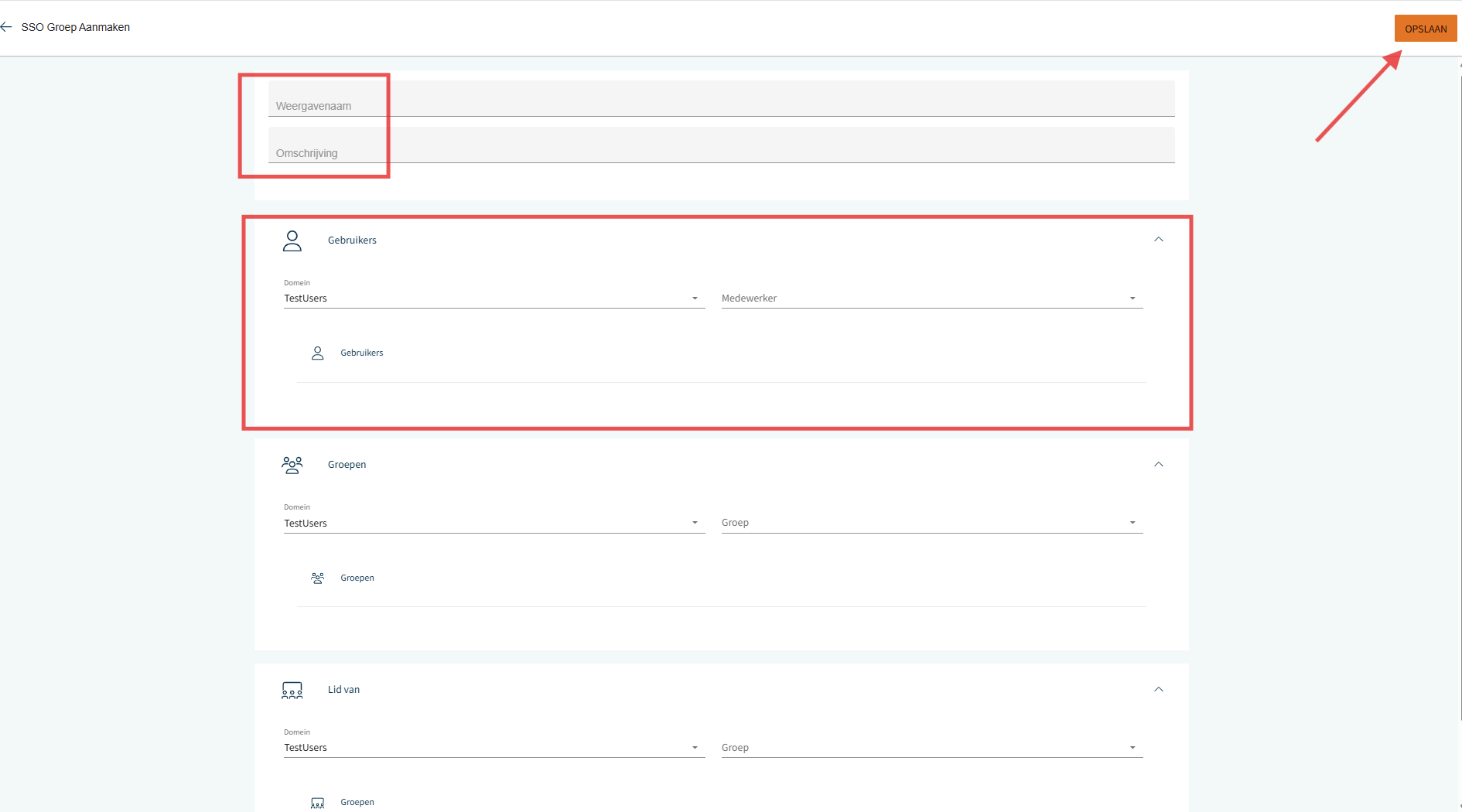 Geef de groep een naam en vul indien gewenst een omschrijving in. Voeg daarna de benodigde gebruikers toe en klik op opslaan.