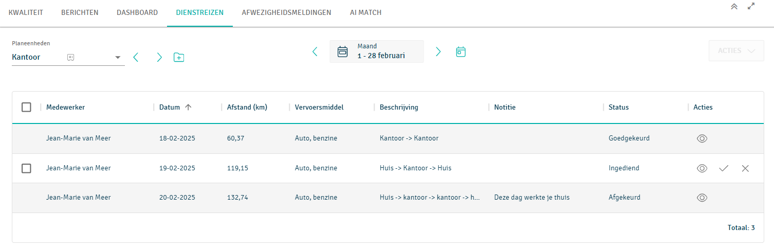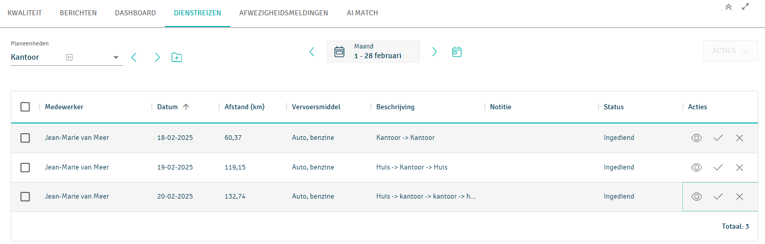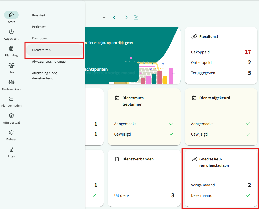 Ga naar Start → Kwaliteit. Klik hier op de tegel Goed te keuren dienstreizen. Je wordt automatisch naar de Dienstreizen tab geleid.