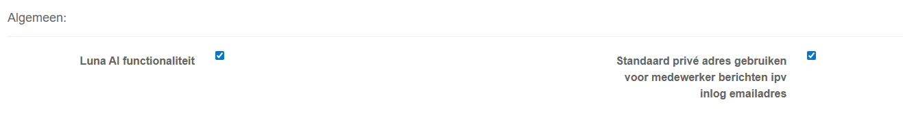 Als beheerder kun je voor de hele organisatie aanpassen waar medewerker berichten naartoe gestuurd worden. Dit doe je door in Beheer | HR | Stuurgegevens de optie 'Standaard privé adres gebruiken voor medewerker berichten ipv inlog emailadres' aan te zetten.