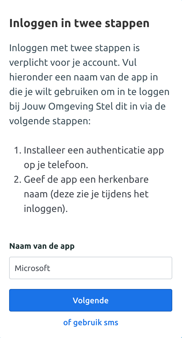 Een authenticatie app gebruiken om in te loggen in Jouw Omgeving