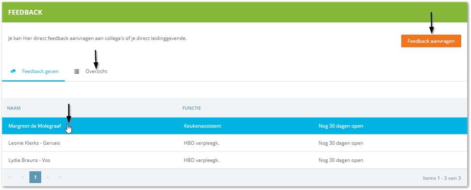 In dit scherm komen de feedbackverzoeken voor de medewerker