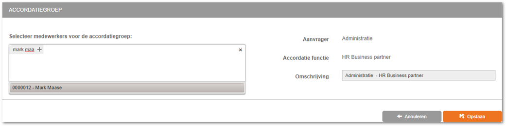 De benodigde accorderingsfunctie is “Direct Leidinggevende” of “P&O”.