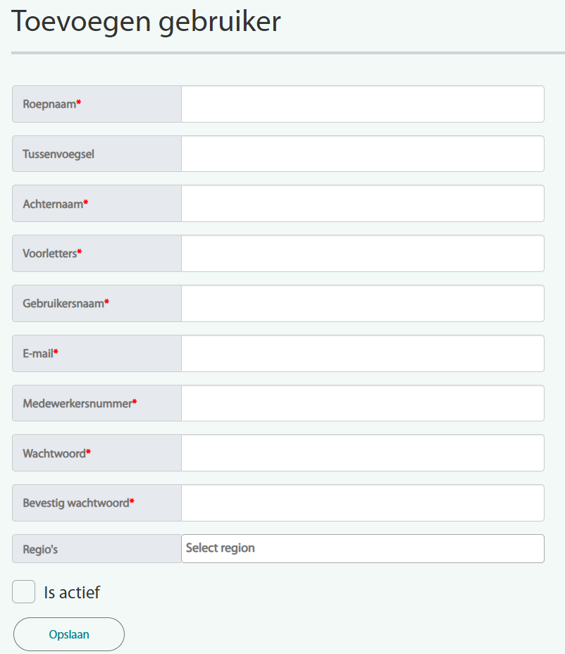 Vul minimaal de verplichte velden in om de gebruiker te kunnen opslaan.