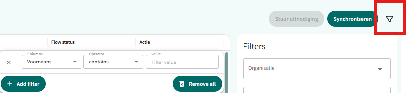 Rechtsboven met het filter icoon kan er op verschillende mogelijkheden gefilterd worden op de lijst.