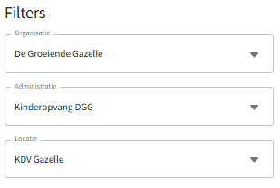 Rechts kan gefilterd worden op Organisatie/Administratie/Locatie.