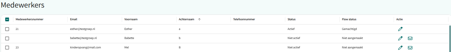 Alle medewerkers die worden aangemaakt onder het menu Medewerkers worden hier getoond.