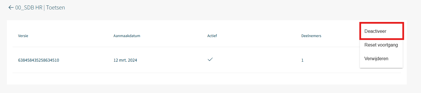 Klik op op de gewenste versie op de 3 puntjes rechts en kies de optie Deactiveer om het pakket deactiveren.