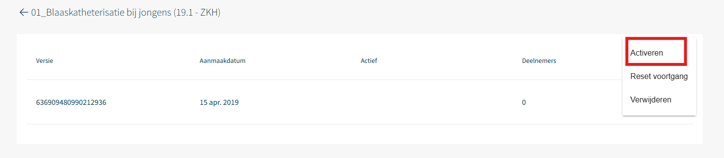Op het volgende scherm verschijnen de beschikbare versie(s) voor dit e-learningpakket.