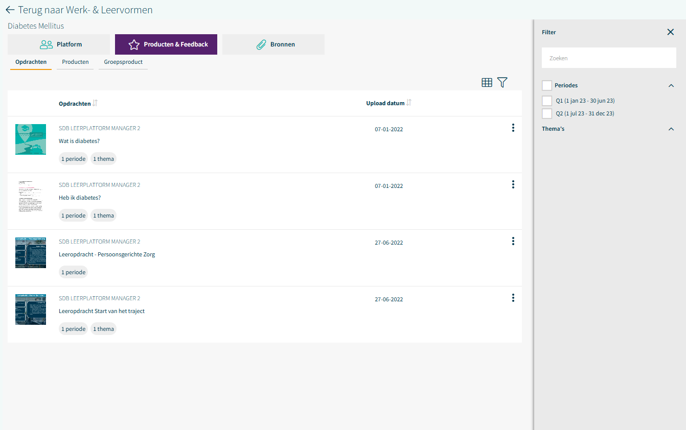 Opdrachten aanpassen kan eenvoudig via het opdrachtenoverzicht. Zo houd je de inhoud actueel en correct gekoppeld aan thema’s en periodes. Stap-voor-stap Open Producten en Feedback → tab Opdrachten Klik bij de gewenste opdracht op de drie puntjes ...