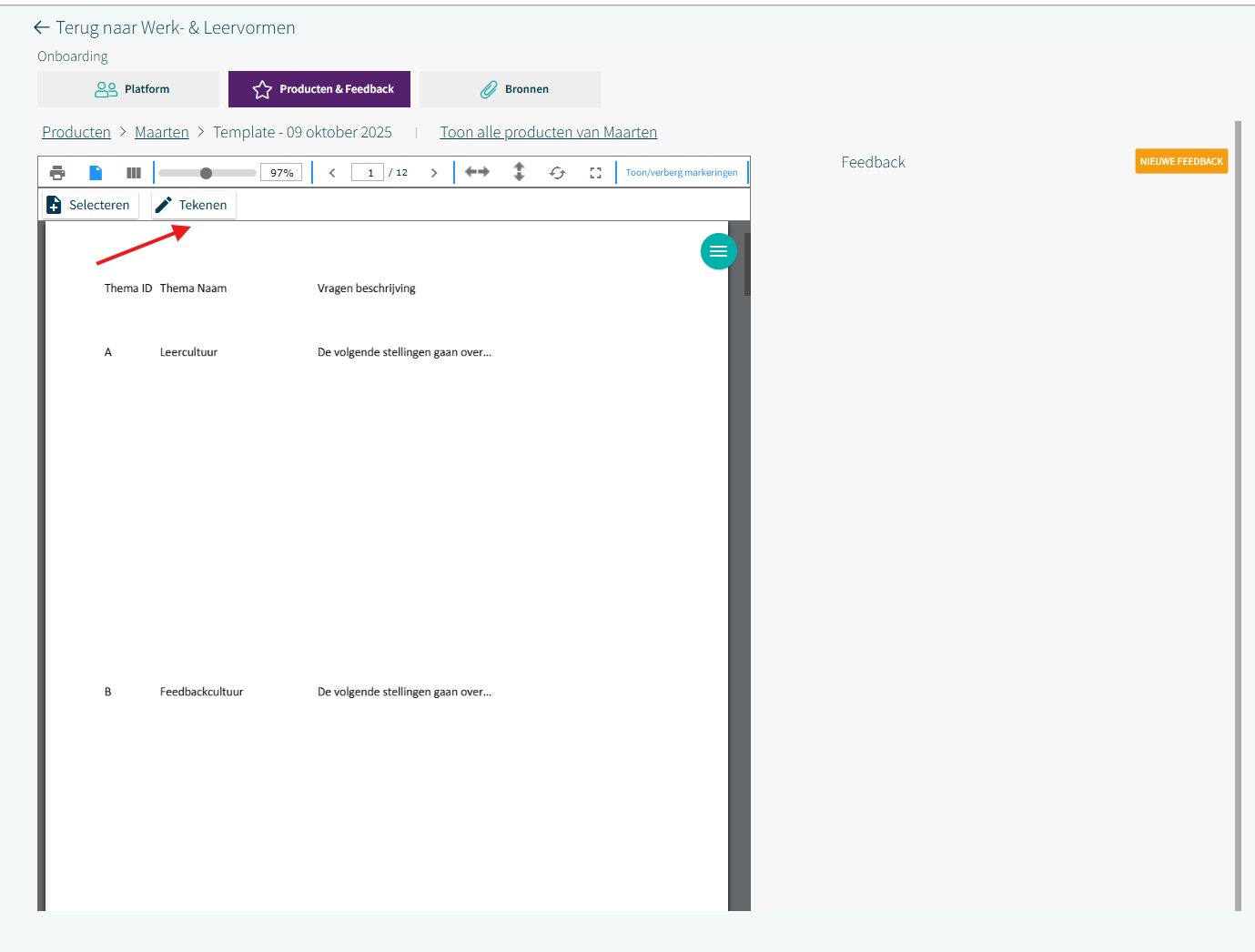 - Klik rechtsboven op de button 'Nieuwe Feedback'
