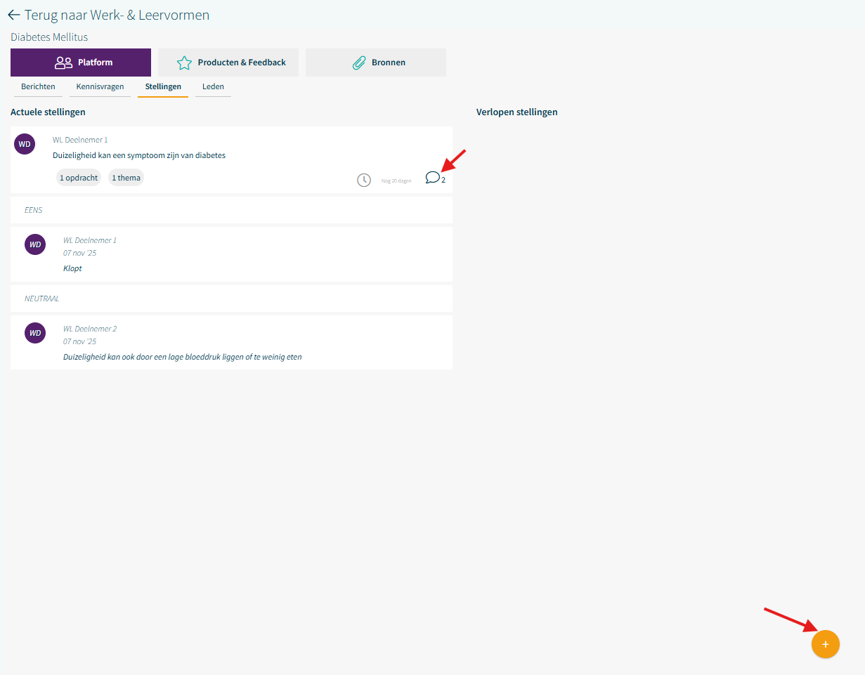 Binnen de community kun je een stelling maken, hierop reageren én de looptijd terugvinden – allemaal via het tabblad Stellingen. Je plaatst je standpunt met argument, laat je reactie achter bij anderen en volgt de resultaten zolang de stelling actief is.