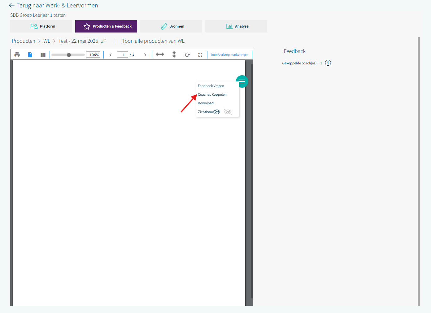 In het product kun je snel een coach koppelen, zodat die gericht feedback kan geven op jouw werk. Binnen een paar stappen selecteer je de juiste persoon en geef je direct toegang tot jouw product.