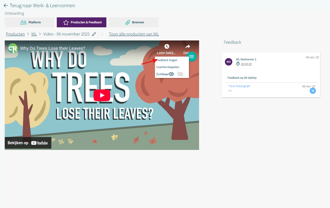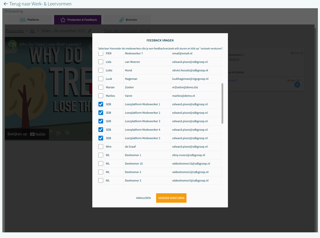- Vink Deelnemers, Opleiders en/of Expert aan waarvan je feedback wilt ontvangen