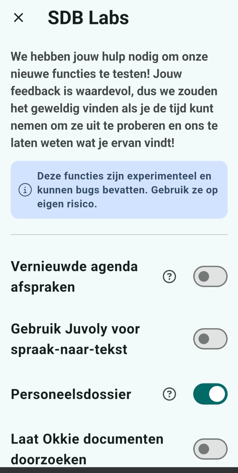 Deze functionaliteit dient aan te staan in LABS via SDB ONE.