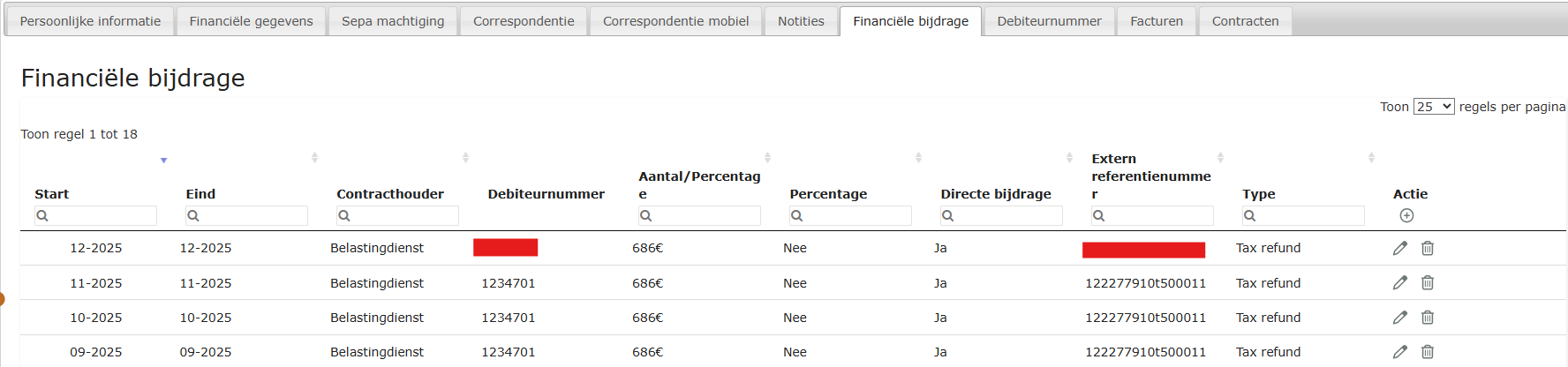 - De contracthouder moet aangemaakt zijn voor directe financiële bijdragen.