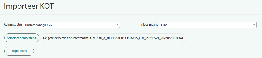 Per administratie dient de KOT te worden geïmporteerd. Ook wanneer er dus 1 bestand is voor meerdere administraties is. Dan moet hetzelfde bestand voor iedere administratie apart worden geïmporteerd.