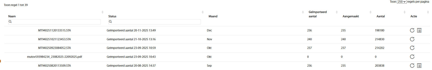 Voor iedere import zal een regel worden aangemaakt in de tabel waarin de details worden weergegeven.