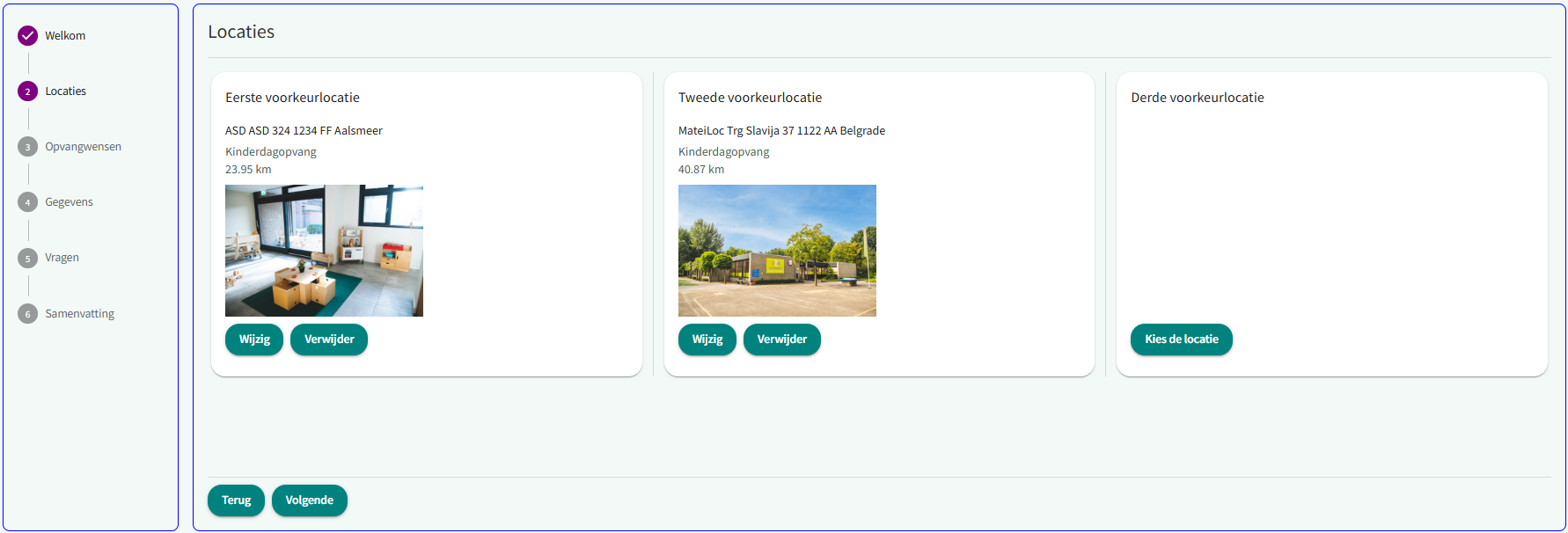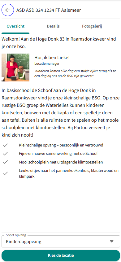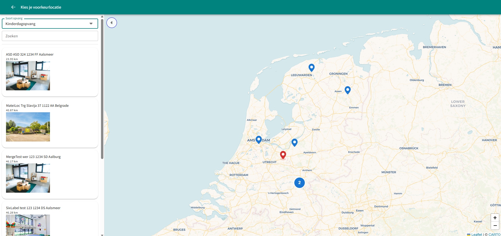 Door het kiezen van de soort opvang worden de locaties getoond waar de gekozen soort opvang beschikbaar is.
