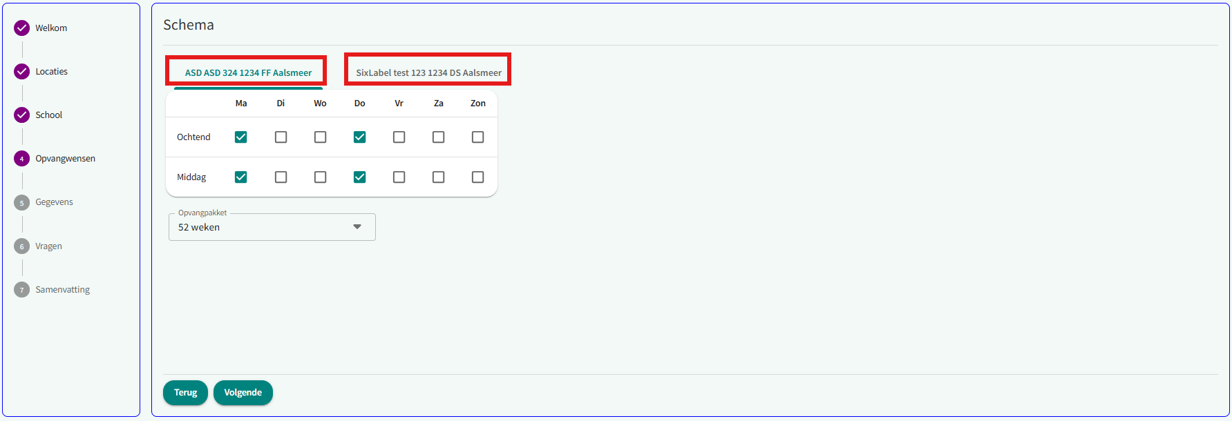 Voor iedere locatie kan een aparte voorkeur aan dagdelen en opvangpakket worden gekozen.