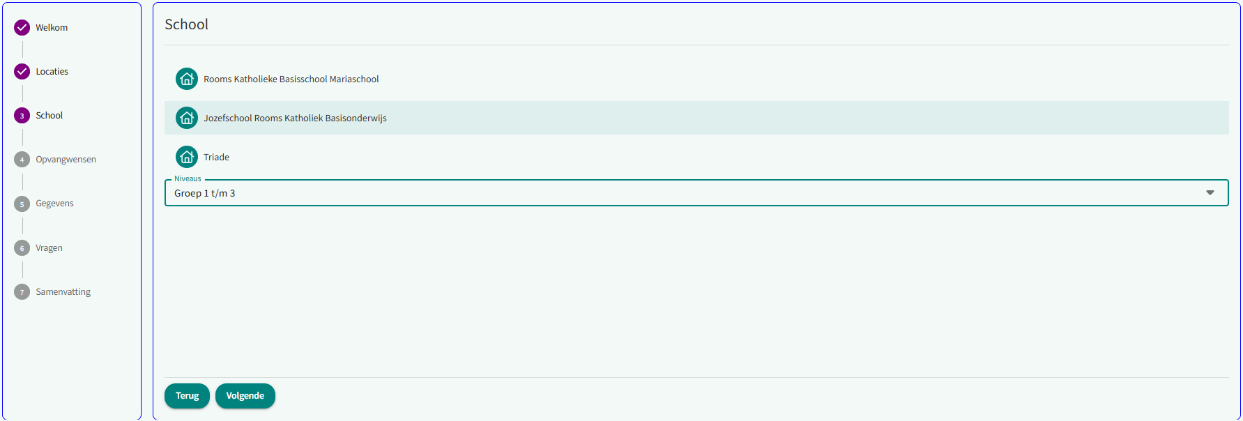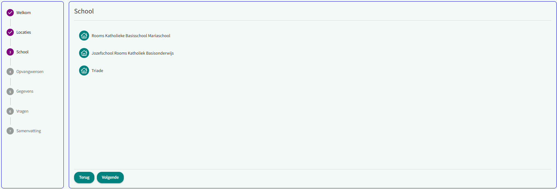De pagina school wordt alleen zichtbaar wanneer er voor een BSO locatie is gekozen.