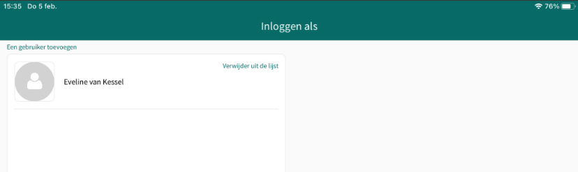 Wanneer er al eerder is ingelogd komt de gebruiker in de lijst te staan.