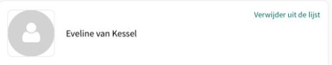 Wanneer een gebruiker moet worden verwijderd, bijvoorbeeld als een medewerker niet meer werkzaam is op die locatie of bij de organisatie, dan kan in de lijst met gebruikers achter de naam van de medewerker worden gekozen voor Verwijder uit de lijst. De gebruiker wordt verwijderd uit de lijst.