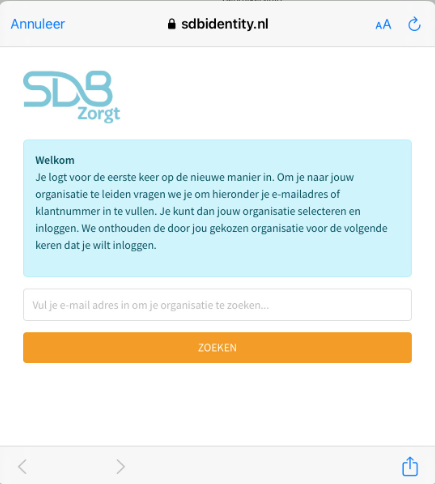 Door te klikken op de organisatie verschijnt het inlogscherm van Identity en kan er met de betreffende gegevens worden ingelogd.