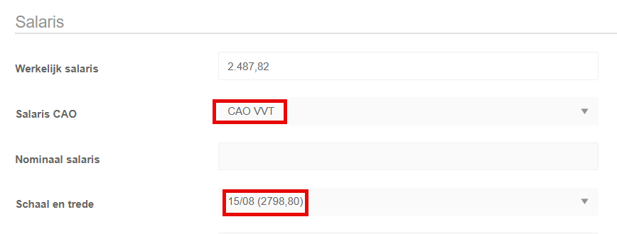 - Salaris CAO & Schaal en trede moeten op het formulier staan om voor ingevuld te worden. (In te richten in Beheer | Processen)