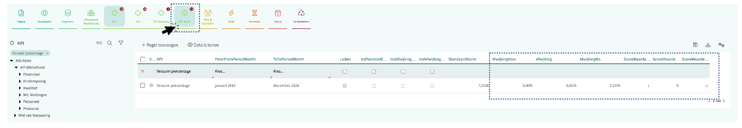 KPI Norm instellen met afwijking percentage