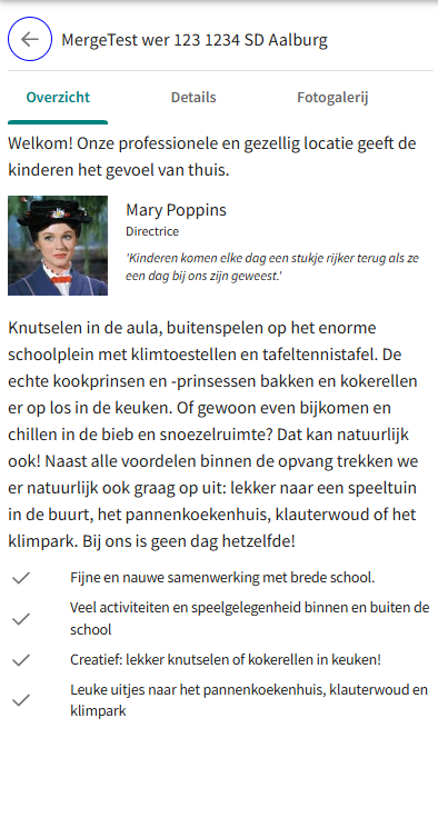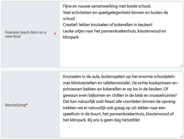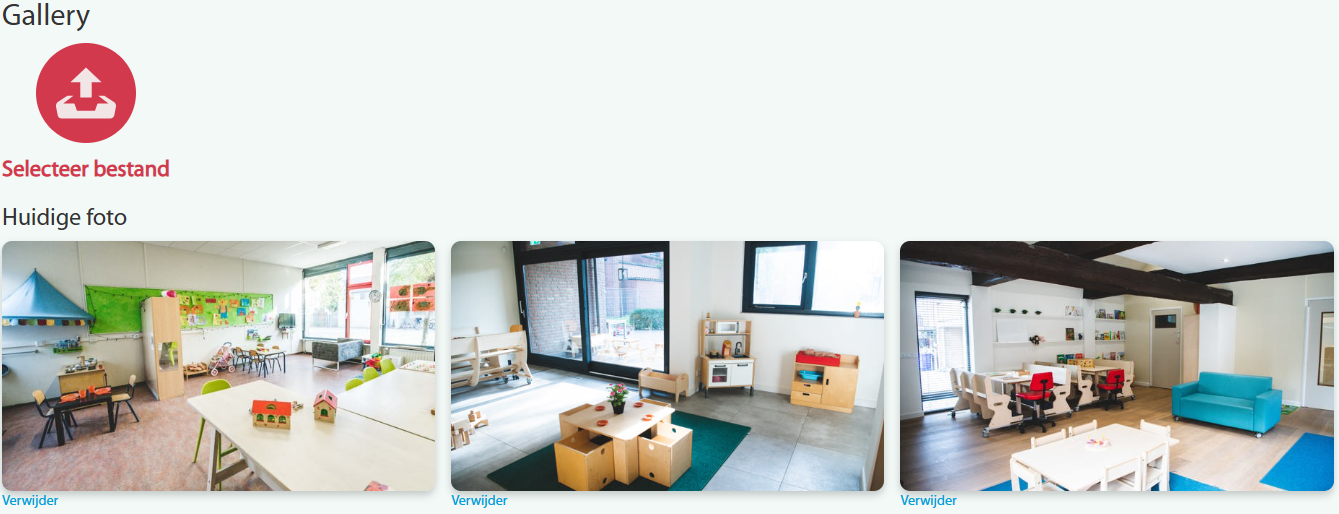 Om alvast informatie te geven over de locatie aan de ouder via het inschrijfformulier kunnen er een aantal gegevens worden ingericht bij de locatie zoals een welkomst tekst, foto's en nog meer.