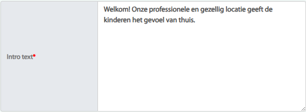 Een korte intro tekst die bovenaan de volledige locatie gegevens wordt getoond.