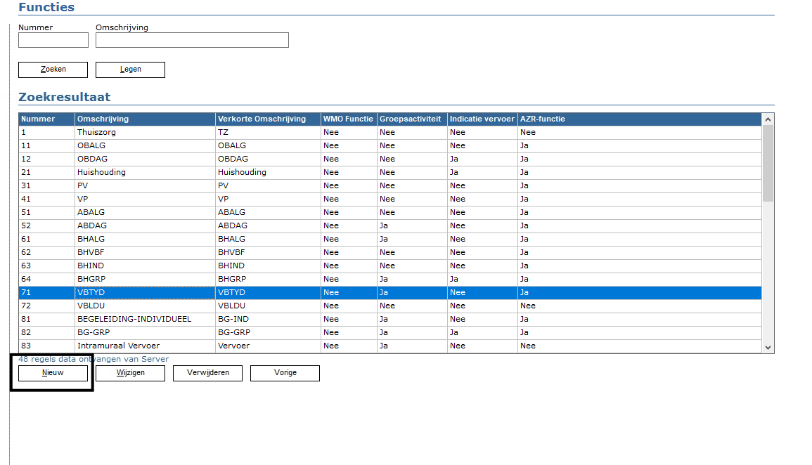 Beheer > stambestanden > functies, is de functie VB-TIJD nog niet aangemaakt dan kun je deze aanmaken via de knop nieuw: