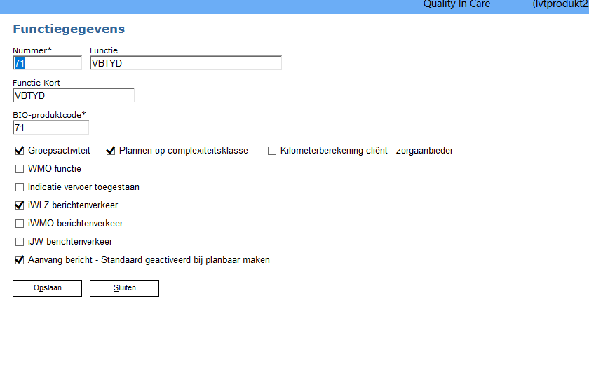Controleer eerst bij functies of de functie nummer 71 VB-TIJD is aangemaakt deze heb je namelijk nodig bij het aanmaken van de complexiteitsklasse.