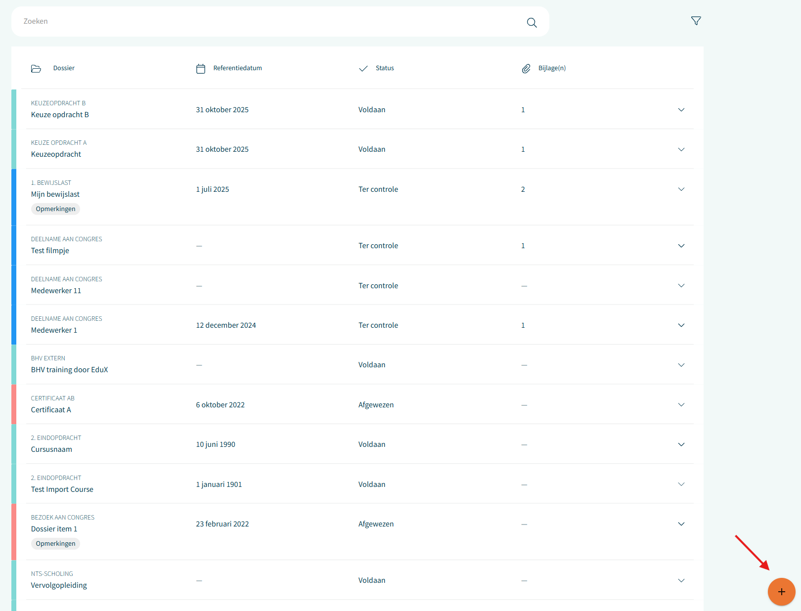 Wil je een nieuw dossieritem toevoegen? Klik dan op de plusknop rechtsonder. Selecteer dan het gewenste dossieritem type om verder in te vullen.