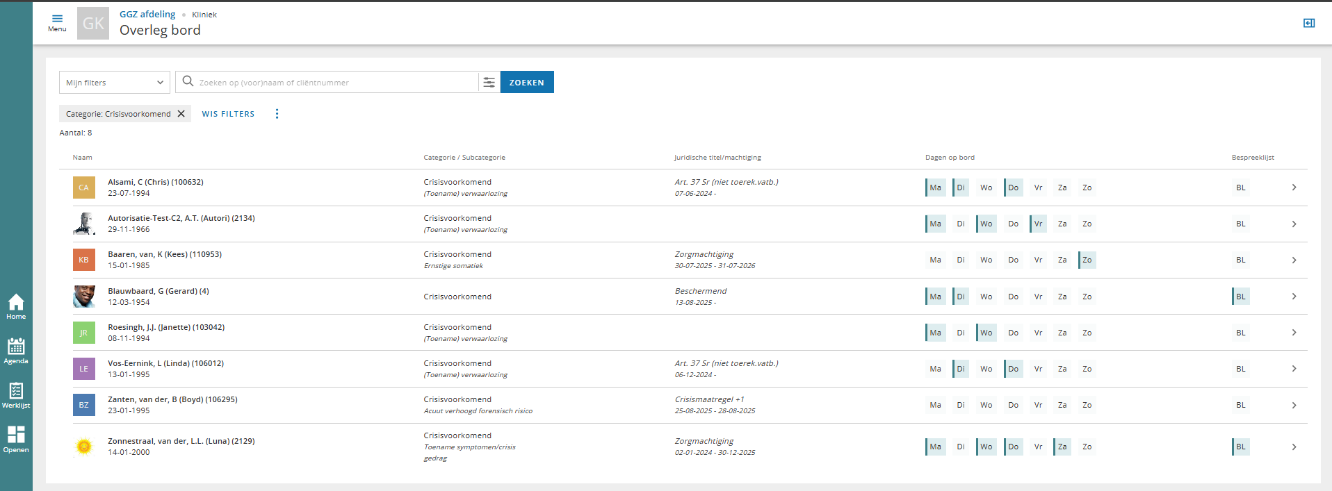 Agenda cliënt | Toont de Agenda module waarbij de agenda van de cliënt en medewerker worden getoond. | Ja |