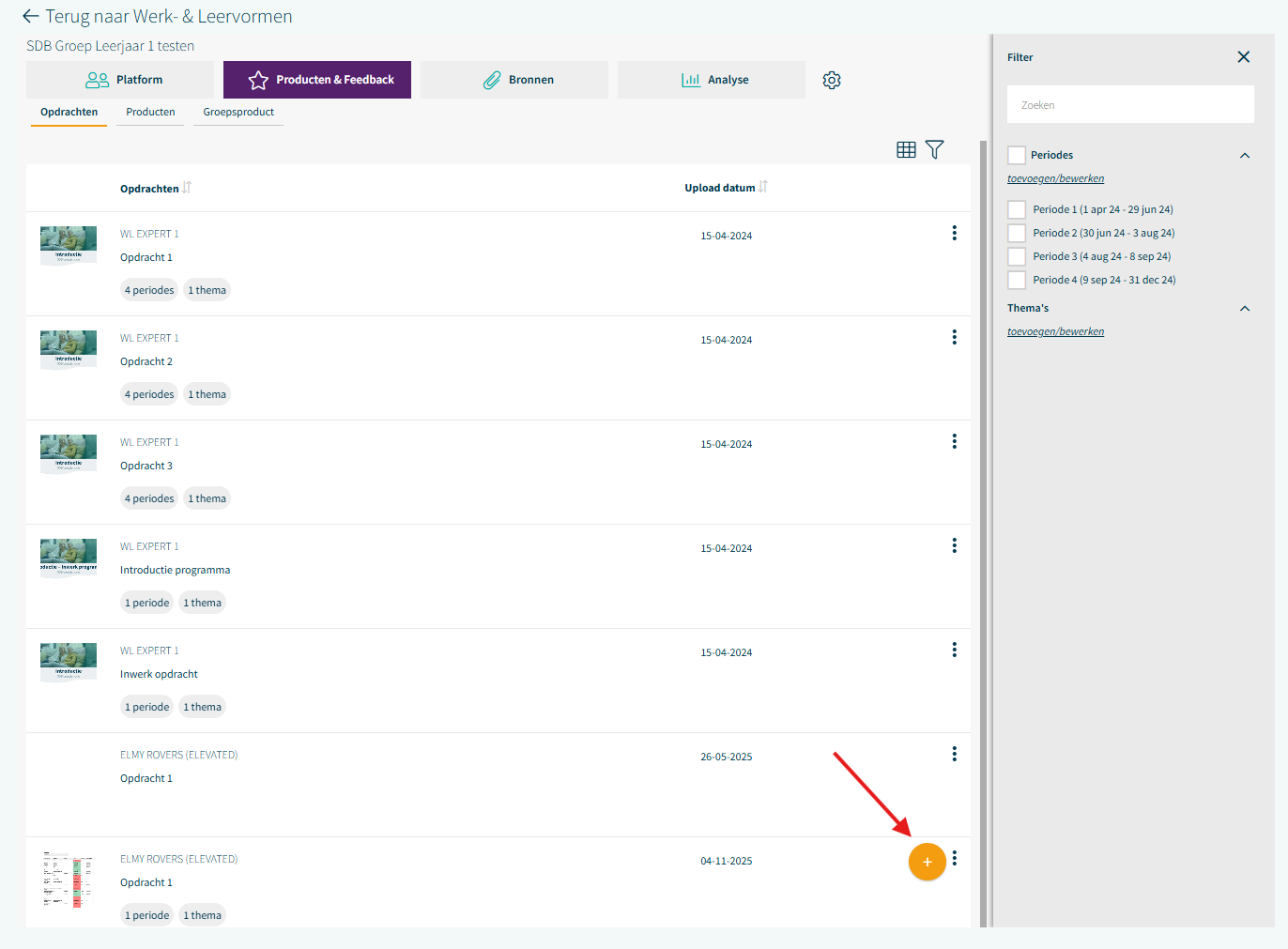 Bestaande bronnen kun je later eenvoudig koppelen aan opdrachten, zodat alle materialen overzichtelijk bij elkaar staan. Stap-voor-stap opdrachten vinden Open Producten en Feedback → tab Opdrachten Filter opdrachten eventueel via de themazoekbalk ...