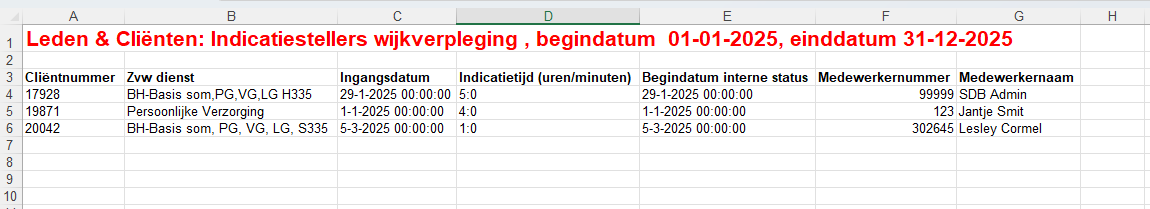 Hieronder vind je een voorbeeld van het overzicht dat uit de job komt: