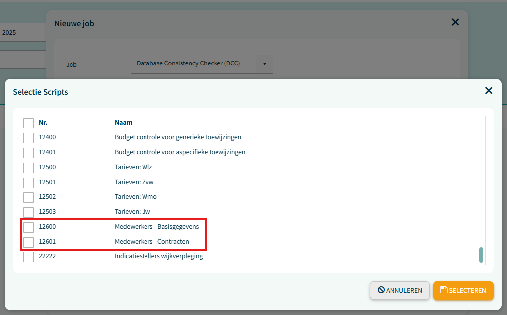 Soms is het noodzakelijk om inzicht te krijgen in welke medewerkers en/of contracten in SDB ECD zijn geregistreerd. Dit kan bijvoorbeeld nodig zijn voor controles, rapportages of interne afstemming. Met behulp van de job 'Database Consistency Checker' kan een overzicht worden gegenereerd van de geregistreerde medewerkers en/of contracten: