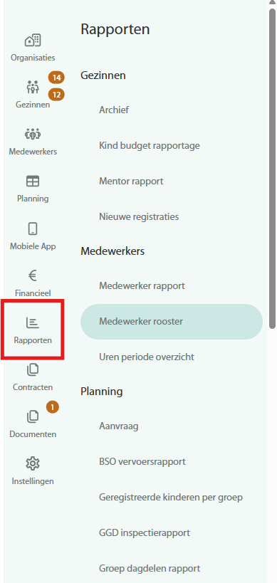 De structuur van dit menu inclusief elk individueel rapport is onderdeel van de gebruikersrechten.