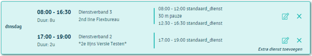 Door te klikken op ‘Extra dienst toevoegen’ wordt een extra regel aan de dienst toegevoegd waarbij een